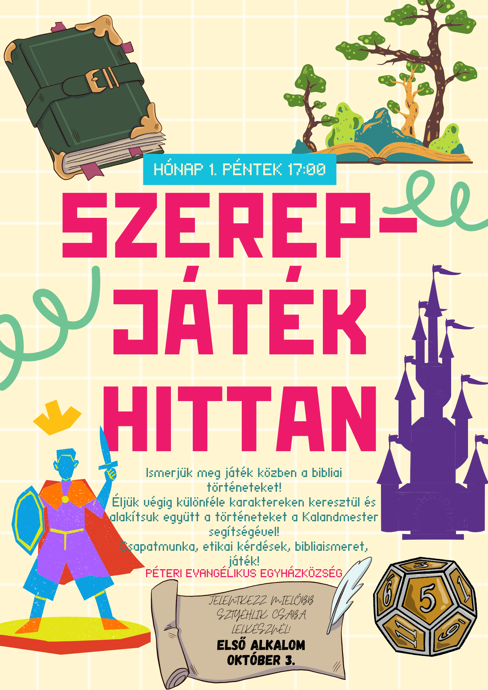– Péntek 17:00 Szerepjáték Hittan (hónap 1.) /