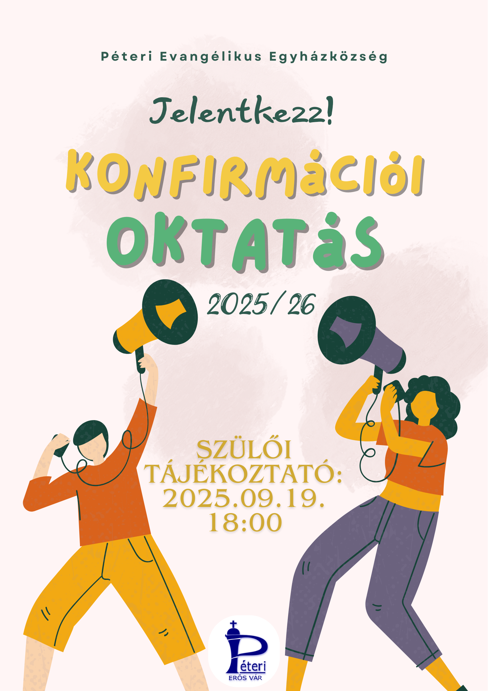 Szeretettel hívogatjuk a már legalább 5. osztályt megkezdő gyermekeket, valamint a felnőtteket is a Konfirmációra felkészítő oktatásra!